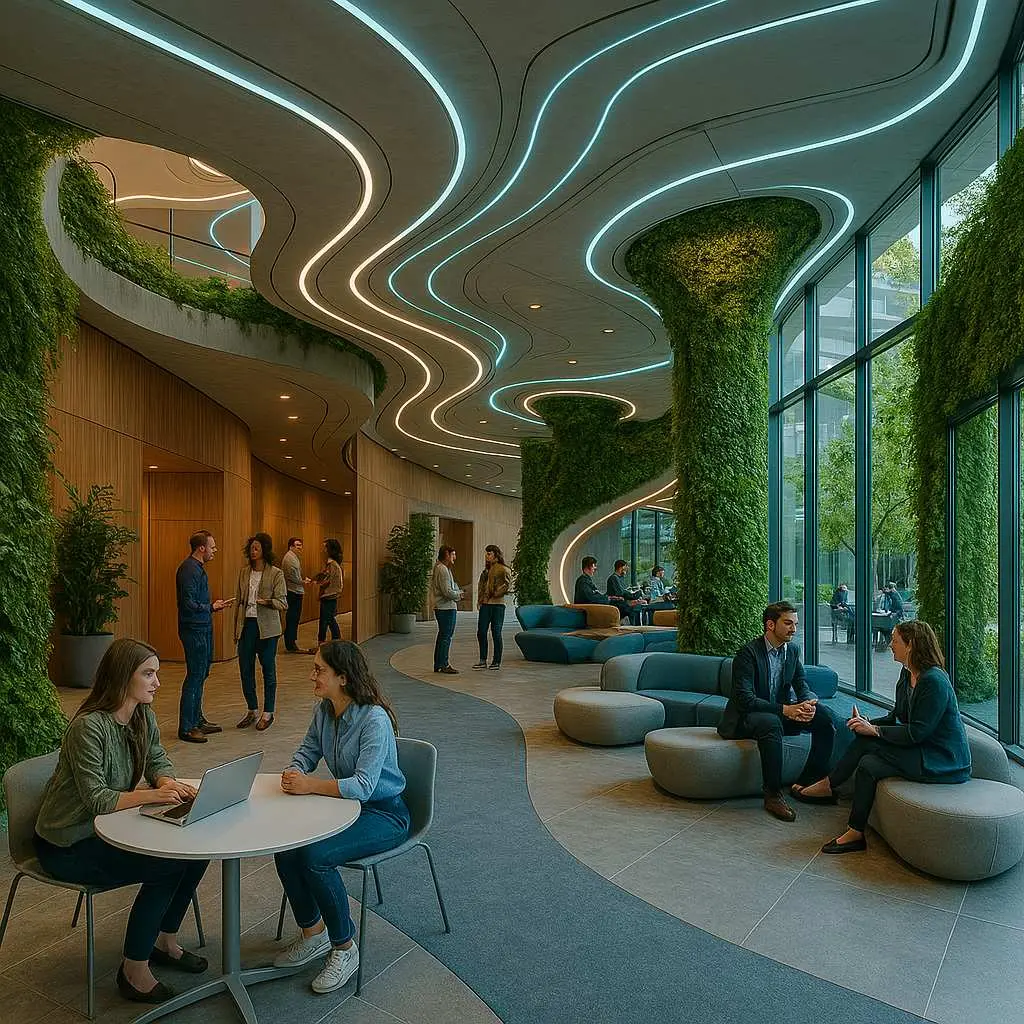 There’s a powerful connection between nature and well-being, and this extends to social interaction. Biophilic design – incorporating natural elements like plants, water, natural light, and materials like wood and stone – does more than just beautify a space. Nature itself is inherently dynamic and subtly unpredictable. Incorporating it into our built environments can make them feel calmer, more restorative, and paradoxically, more alive. Living walls, indoor gardens, or even simple potted plants can soften hard edges, improve air quality, and create pockets of tranquility that invite people to pause. Views of nature from within transitional spaces or communal areas can reduce stress and make people more receptive to casual conversation. The use of natural materials adds warmth and texture, making spaces more tactile and inviting. By bringing elements of the natural world indoors, we tap into an innate human affinity for nature, creating environments where people feel more comfortable, relaxed, and open to the possibility of unplanned encounters.